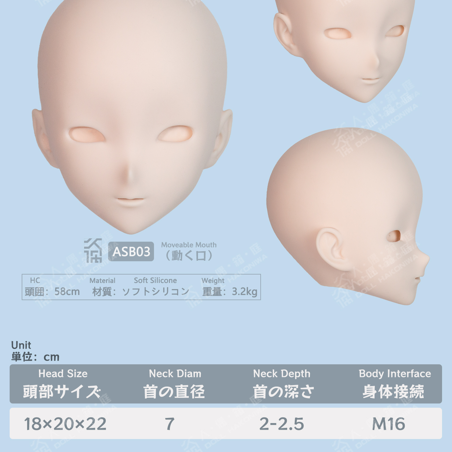DOLL HAKONIWA ASB03 Asebi soft silicone doll head