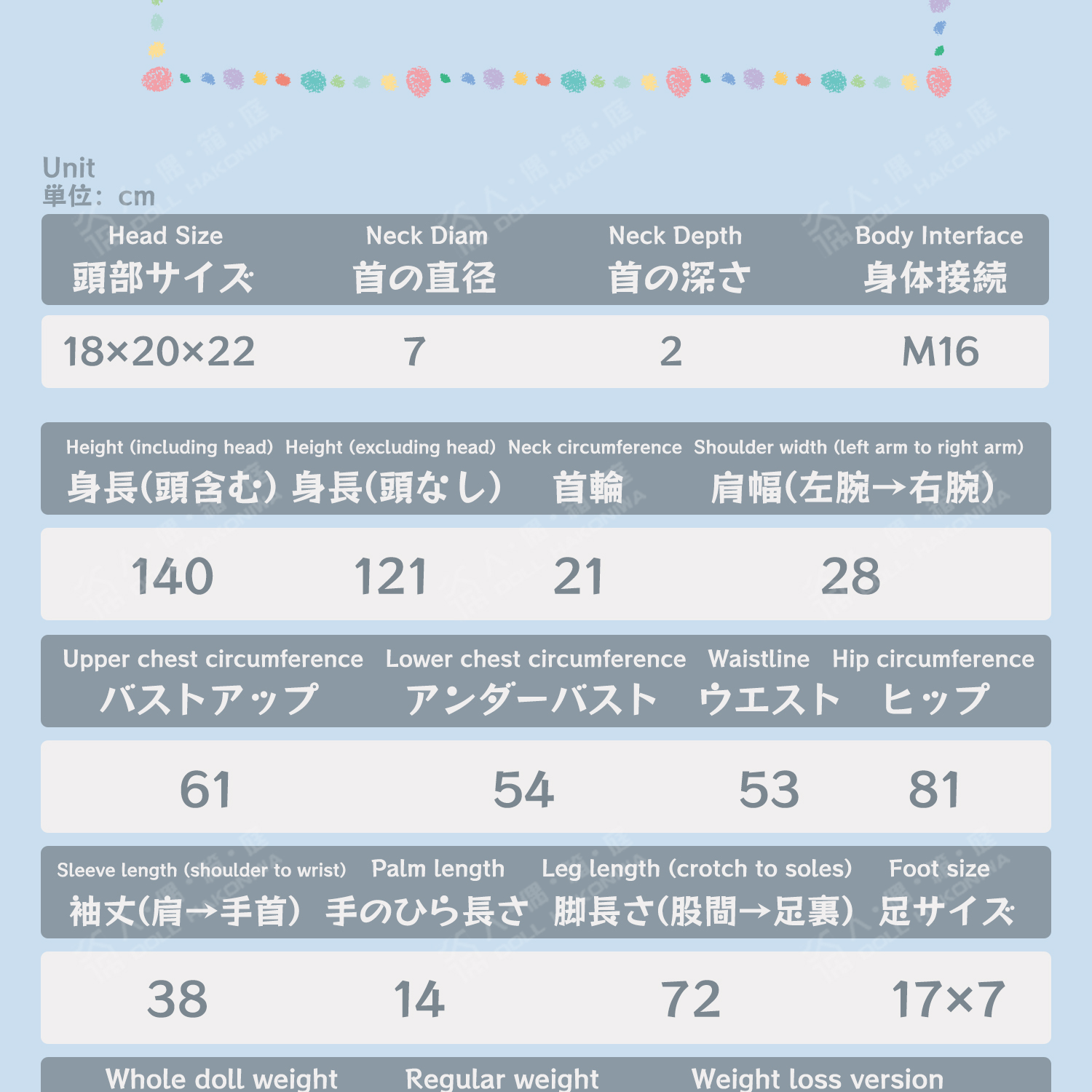 WHOLE DOLL WEIGHT (BODY MATERIAL)